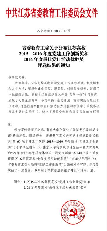 2017-06-29一本道 党委荣获江苏省高校2015—2016年度年度党建工作创新二等奖