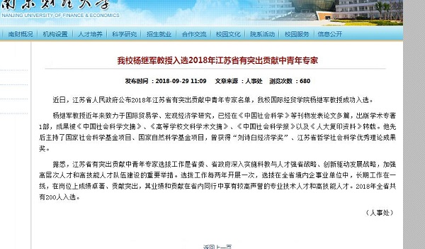 2018-09-30一本道 杨继军教授入选2018年江苏省有突出贡献中青年专家