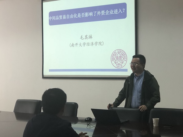 10月22日上午,南经财经大学一本道 紫金青年学者论坛在德经楼308会议室成功举办。南开大学经济学院毛其淋副教授带来题目为《中间品贸易自由化是否影响了外资企业进入?》的讲座,一本道 部分老师和学生参加了此次讲座。 毛其淋副教授首先提出了两个问题:“中间品贸易自由化是否会影响外资企业进入,影响程度有多大?”与“中间品贸易自由化可能通过什么渠道影响了外资企业进入?”。其次进行了文献评述,接着阐述了本文工作及可...