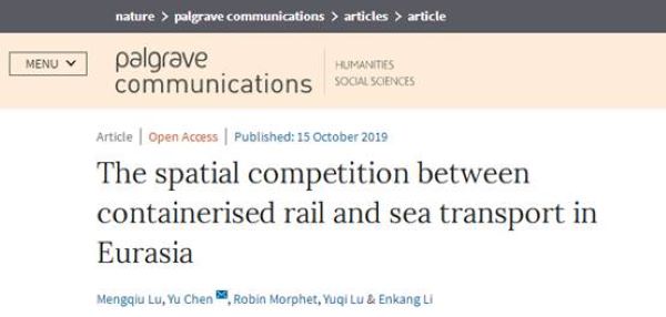 近日,一本道 2019年新引进的陆梦秋博士在“一带一路”领域取得重要研究进展。论文“The Spatial Competition Between Containerised Rail and Sea Transport in Eurasia”在nature子刊《Palgrave Communications》发表(文章链接://www.nature.com/articles/s41599-019-0334-6)。这是我国“一带一路”倡议提出以来在国际顶级期刊上发表的重要原创性研究成果,是一本道 国际化的一项标志性成果。论文对“一带一路”进行了空间...