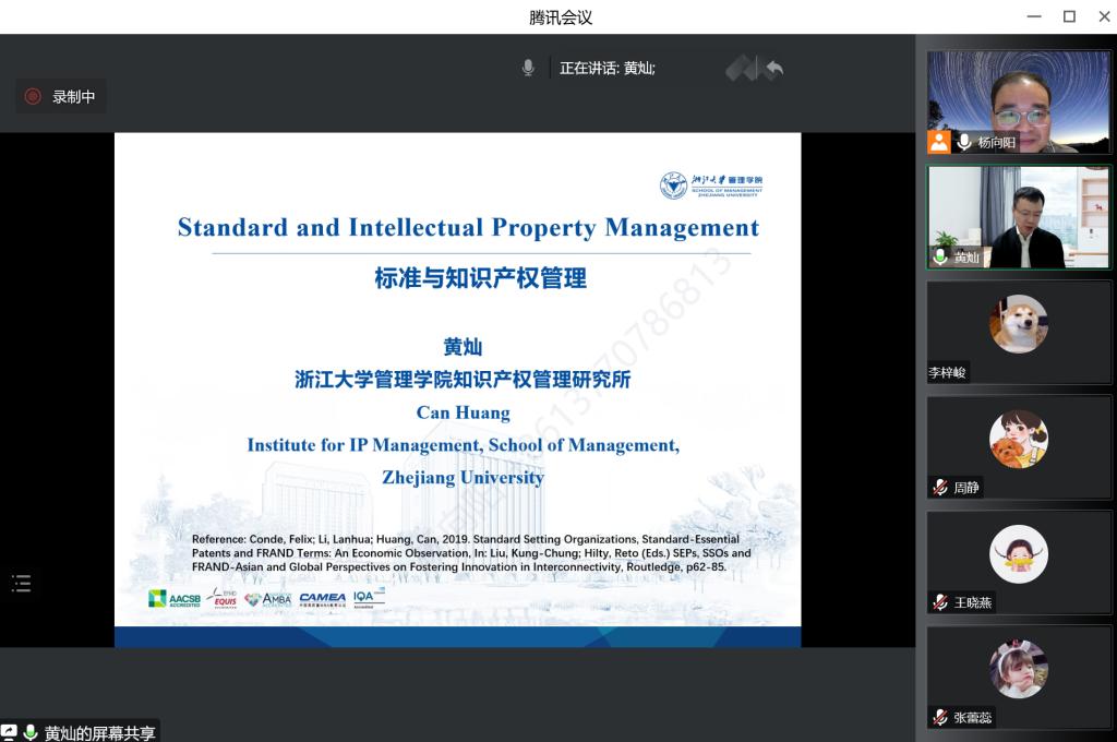 邀请,浙江大学管理学院黄灿教授在线上做了题为《标准与知识产权管理》的学术讲座。本次讲座由一本道