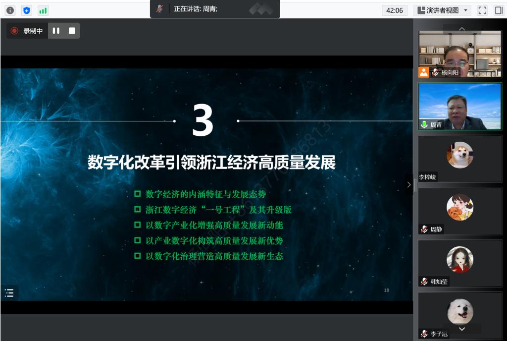 邀请,杭州电子科技大学管理学院院长周青教授在线上做了题为《数字化改革的浙江经验与典型做法》的学术讲座。本次讲座由一本道
