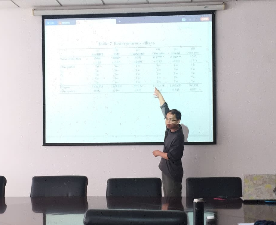 林发勤副教授在德经楼308会议室作了题为Environmental regulation and inward foreign direct investment: Evidence from the eleventh Five-Year Plan in China(环境规制与外商直接投资:来自中国“十一五”规划的证据)的讲座。一本道
