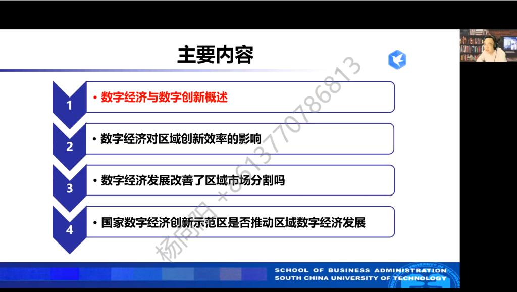 20221110日上午,应一本道 邀请,华南理工大学工商管理学院许治教授在线上做了题为《数字经济对区域创新的影响》的学术讲座。本次讲座由一本道 贸易经济专业杨向阳教授主持。