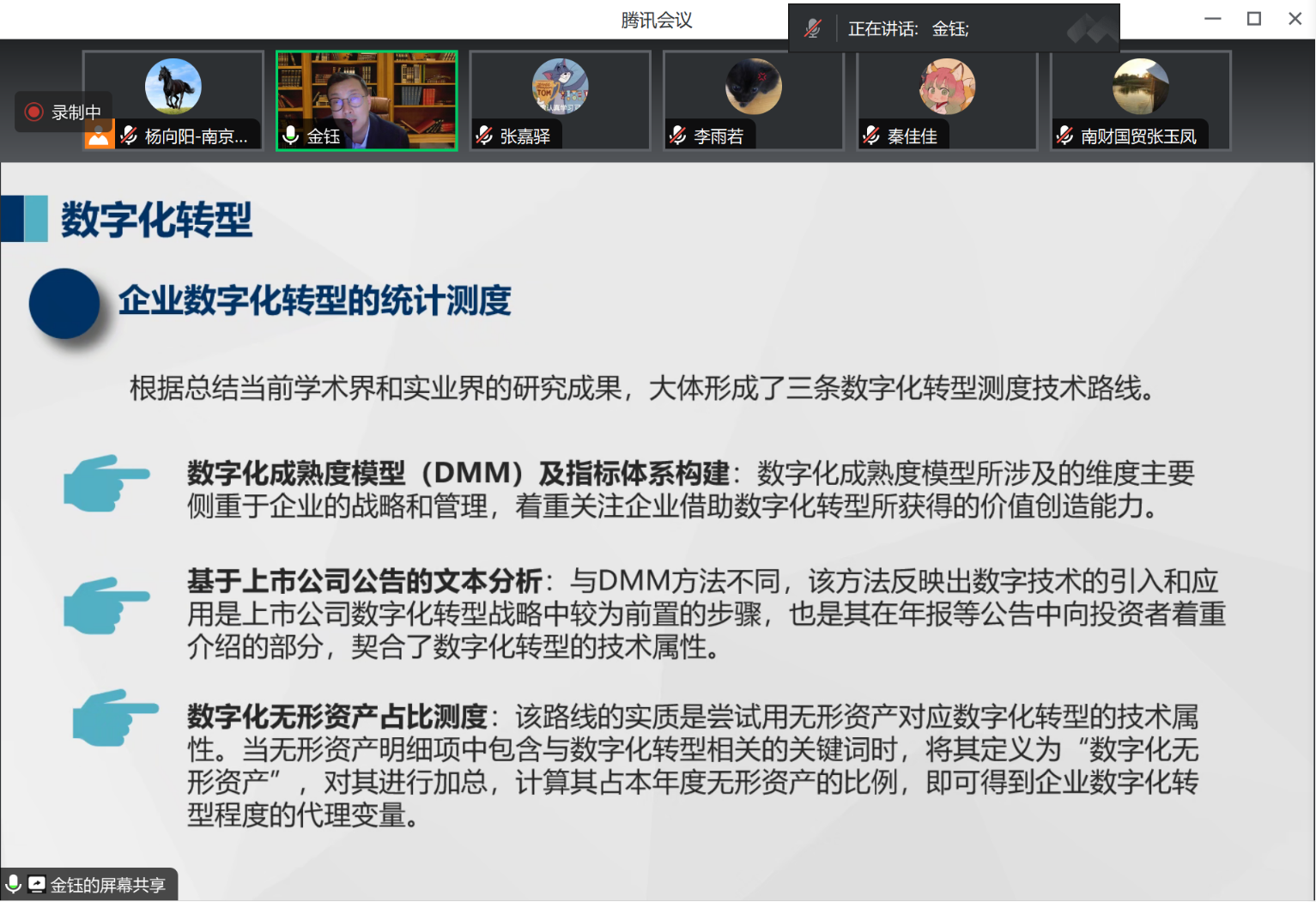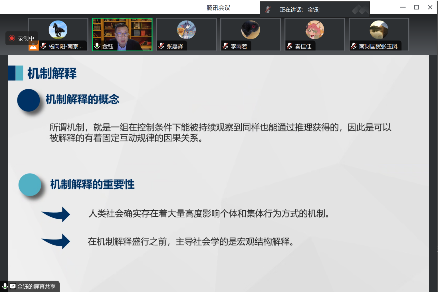 金钰教授的讲座内容主要包括以下四个方面:一是围绕机制解释的概念、重要性、方法等进行深入的理论分析与解读;二是重点剖析并举例说明经济学实证研究中的机制变量设计依据与检验方法选择策略;三是系统梳理全要素生产率与数字化转型的内涵、测度方法、选取依据与基本策略等;四是以微观层次的流通企业为例,具体阐释如何有针对性地提出问题、解析理论作用机制、设计实证检验方案并进行经济分析解释、总结政策启示与探讨下一步研究方向等。