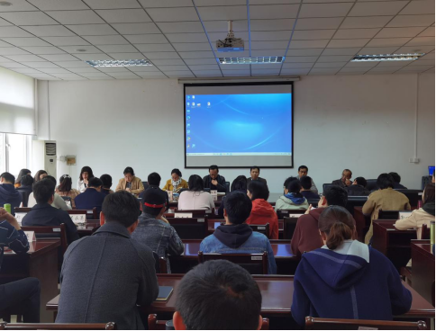 在德经楼308会议室召开教职工大会,学院领导和全体教职工参会,会议由学院党委书记张阳军主持。