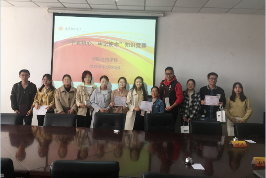 在德经楼308会议室举办“不忘初心、牢记使命”专题知识竞赛。学院党委书记张阳军出席并指导此次知识竞赛,一本道