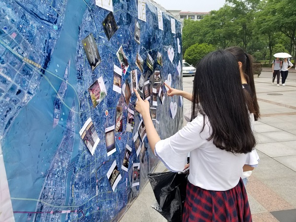 活动前,国贸学院学生去往了南京博物院、江宁织造博物馆、中国科举博物馆、太平天国历史博物馆、古生物博物馆、南京古地质博物馆等多个著名主题博物馆参观并用照片形式记录。在照片展的现场,同学们将所拍摄的照片按所在位置粘贴在南京地图上,形成脉络清晰的线路图,并在对应照片附近增添对各大博物馆的介绍,制作成图片海报展。照片内容丰富,包括博物馆馆外风景、展馆建筑样式、馆内各式展品、历史场景还原、历史人物雕塑等。讲解学生卢颖为大家讲解了照片上文物背后的故事与回归祖国的坎坷历程,让“静止”的文物“活”起来,照片展吸引到很多学生的驻足观看。