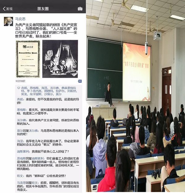 在德正楼101教室开展“如果马克思也有朋友圈”微课,微课由17级本科生党支部书记胡新蕲主持,一本道