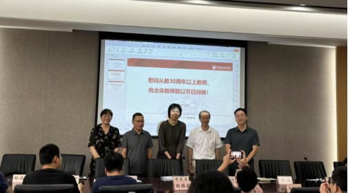 全体教职工大会上,周亚芳书记、余泳泽院长为教龄30年以上的杨风召、胡雅蓓、陶金国等老师颁发学院专属纪念品,感谢其为教育工作付出的辛劳和努力。周书记代表学院向长期耕耘在教学、科研、管理一线的全体教师致以节日问候。她指出,老教师是学校发展的见证者、参与者和奉献者,他们的教育情怀与学术精神已成为学校最宝贵的财富。青年教师纷纷承诺传承教育家精神,续写学校高质量发展新篇章。