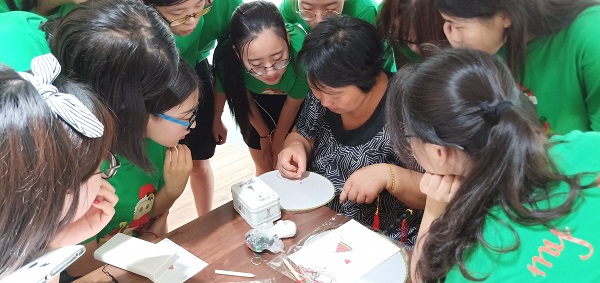 7.14-7.19期间,团队成员在“薛金娣刺绣博物馆”学习了苏绣的基本针法。我校校友、姑苏绣郎张雪及其母亲亲自教学,大家从一窍不通逐渐学会劈线、穿针打结、起针,收小针,后有接触了乱针绣、滚针和打籽,到最后可以绣出完整的作品,队员们满是喜悦和激动。在学习苏绣之余,大家还在密集的苏绣街走访苏绣店铺,了解苏绣产业的发展现状,探寻苏绣的传承与发展。团队成员希望通过自己的努力能挑起创艺传承之担,让苏绣回归普通人的生活。新华网、团学苏刊、紫金山新闻等媒体对实践团队的活动纷纷予以宣传报道。