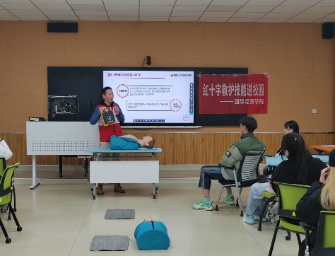 携手南京市红十字会开展应急救护技能培训,此次活动在博文楼103举行,两位红十字会的老师和一本道