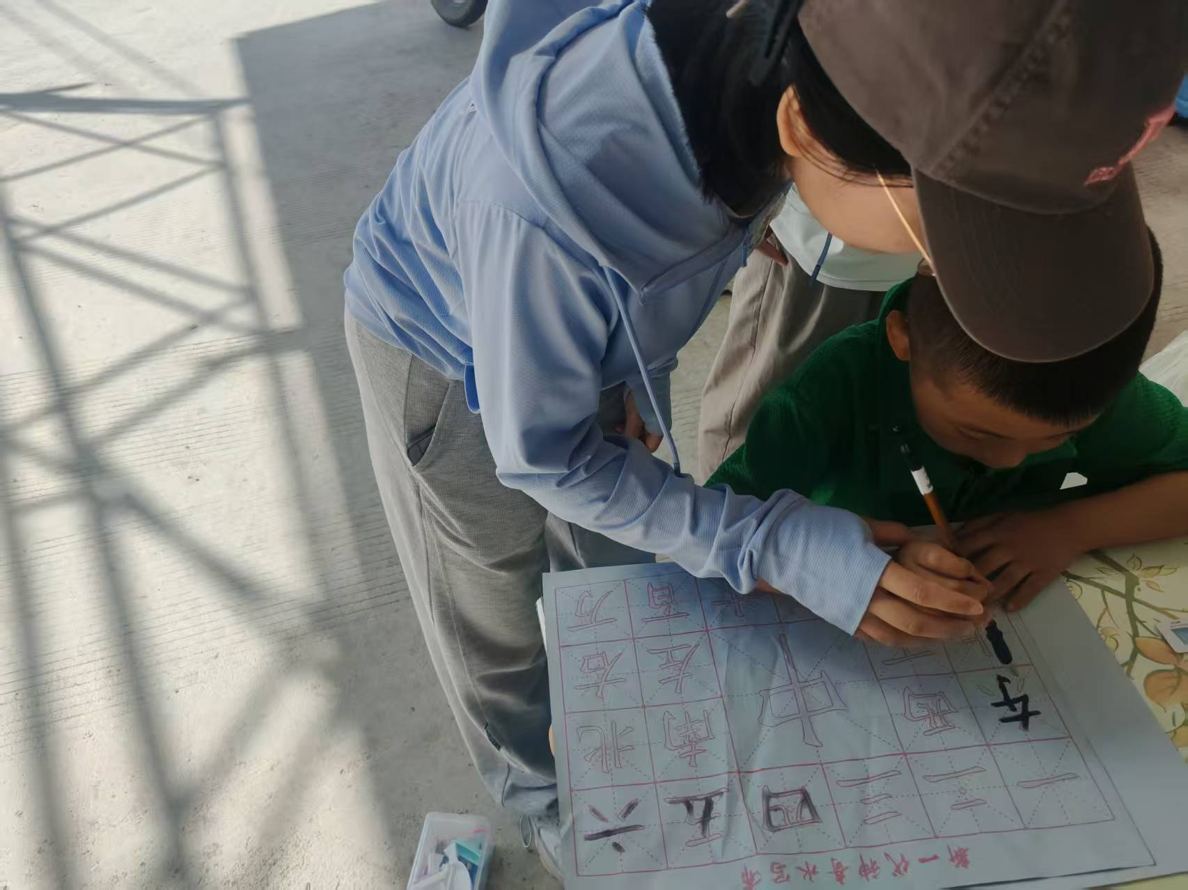 剪纸课上,红纸在孩子们手中变出各式花样;书法桌前,志愿者们教会孩子如何写毛笔字,他们不时扶正孩子的手腕,用指尖轻触纸面示意运笔方向,在一次次的书写中墨香里“仁、义”字样逐渐成型。一个孩子说:“在这里,我学会了拿毛笔,也体会到了书法与剪纸的魅力。”