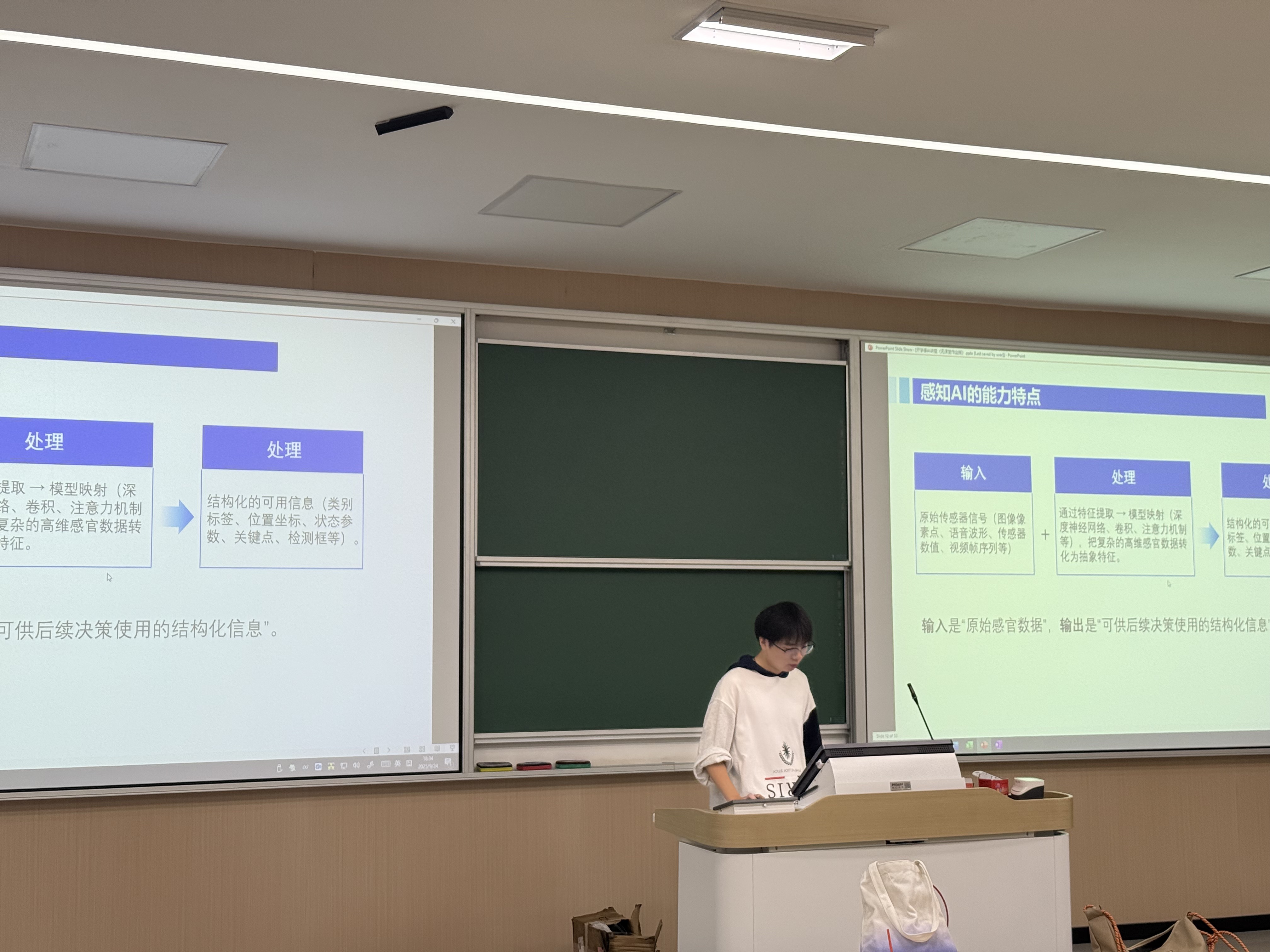 AI的价值,在于它如何真正融入并提升我们的日常生活与工作效率。褚新磊同学聚焦AI应用场景展开介绍,用具体案例生动阐释了AI如何深度融入并改变人们的生活。比如,AI可辅助生成策划书、优化简历,大幅提升文书类工作效率,能创造数字人提供口语陪练服务,甚至通过情感交互传递情绪价值;人们还能借助AI解答困惑,轻松化解人际交往难题、读懂行业黑话等。此外,他提到人工智能的图像创作、个性化定制等功能不仅能够显著提升个人与社会的运转效率,更能持续为社会发展注入新动能。
