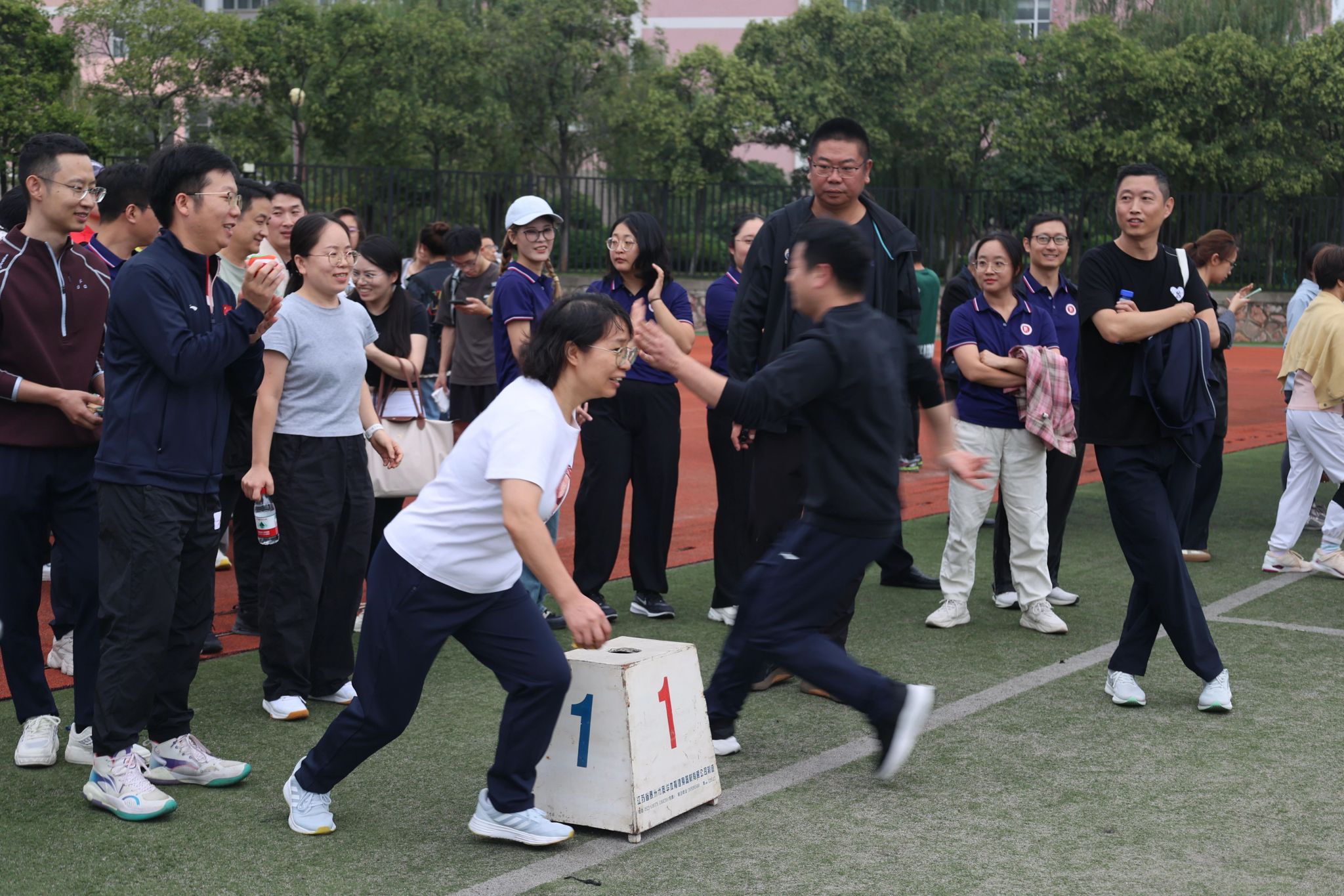 在体育馆中,教职工们依旧活力满格。实心球赛场,老师们屈膝蓄力、奋力一掷,实心球划出优美弧线,赢得满场喝彩;30米托球往返时,大家紧盯球拍稳步前行,彼此提醒“慢一点、稳一点”,每一步都透着细致与默契;定点投篮时,投中便掌声雷动,未中也笑语鼓励:“下次一定行!” ;40秒跳绳“积少成多”,身影轻盈起落,计数声、加油声与笑声交织。老师们以协作之姿,将温暖与力量融入每一次挑战,展现讲台之外的别样风采。