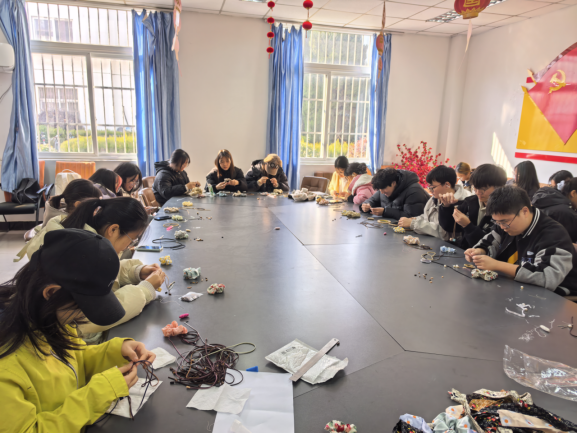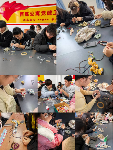 活动现场温馨有序,舒缓音乐与欢声笑语交织。学生们暂别课业压力,在老师及党员志愿者的帮助下,既钻研手工制作技巧,又学习色彩搭配和设计。从生疏摸索到熟练创作,指尖翻飞间,一个个配色和谐、兼具实用性与审美感的发饰相继成型。大家相互欣赏交流,在自制实用物品的过程中,真切体会劳动价值,树立“拒绝盲目跟风、崇尚自给自足”的理性消费意识,满室洋溢青春活力与创作的喜悦。