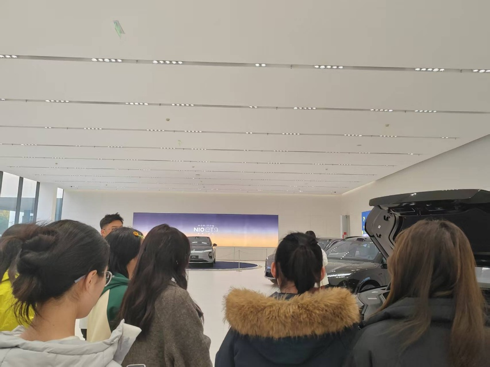 二十余名学生走进蔚来汽车体验中心,开展了一场兼具启发性与互动性的行业参访。在技术讲解、实地观摩与交流座谈中,同学们沉浸式触摸新能源汽车行业的发展脉搏,切身感受智能科技与绿色出行的融合实践。