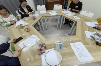 在“扇走烦恼绘春光”创作环节,同学们以空白团扇为载体,挥毫泼墨、彩绘春光,将心中的烦恼与压力化作色彩与文字,在动手创作中舒缓心情、释放压力。一把把独具创意的团扇,既是美育成果,也是心灵独白,让大家在艺术表达中实现自我疗愈。