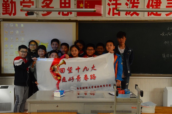 “回望党的十九大,走好青春路”为主题的党的十九大宣讲活动在北京东路小学开展,旨在与北京东路小学的学生们分享党的十九大精神。院学生会主席倪嘉敏等学生会成员以及北京东路小学的学生们参加了本次宣讲。