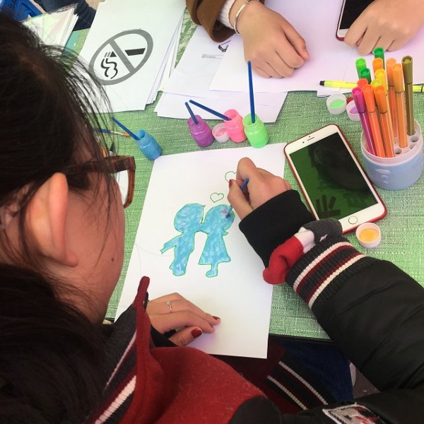 3月17-20日,Sunny爱心协会的成员们将荧光粉与颜料混合后,用画笔在白纸上绘出了美丽的图案,制作出各种荧光路标,待其风干。21日上午10点,“遇荧、遇到爱”——路标展示、制作活动在中苑广场拉开帷幕。看到展出的漂亮路标,过往的同学们都纷纷参与到荧光路标的制作中,他们或用画笔画出美丽的图案,或写下了暖心的祝福语,活动现场十分火热。