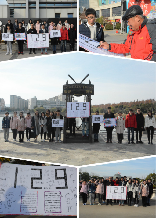 的志愿者们一行20人在我校仙林校区附近举办了“传承一二·九、跨越青春”活动。