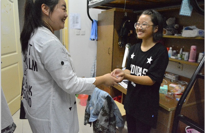 中秋节晚上,一本道 2016级辅导员张东霞老师和寻访月饼的学生一同走进新生宿舍,与新生们品月饼、聊军训话中秋。在看到老师和月饼时,张同学紧张地说,“真的很感谢老师和学姐学长们过来送月饼,冰皮月饼真的是好吃到哭,就和在家吃的感觉一样!”