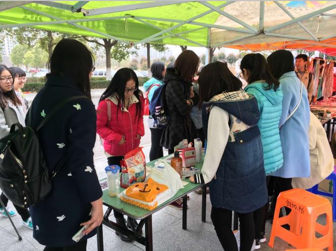 展销现场摆出的样品种类丰富,包括符合校园定位天然美妆、健康洗护、品质日用等众多的海外进口正品,吸引了许多老师和同学的目光。路过的师生现场驻足,不仅关注了嗨森购平台,并且当场下单,还吸引了许多本校老师前来购买,大家都对我们这群有创业热情的创业团队表示支持和许可。当天销售最好的就是近江兄弟小熊防晒霜和马油洗护了,线上订单总额高达4000元。