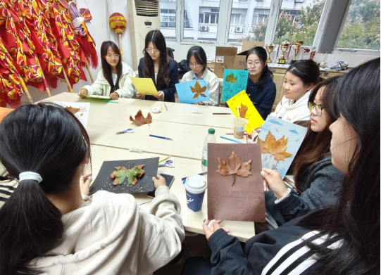 国贸学院心协成功举办了“树叶贴画:秋季DIY,心灵之旅”活动。此次活动不仅让同学们在繁忙的学习生活中找到了放松心情的方式,还通过艺术创作的形式,促进了大家的心理健康。