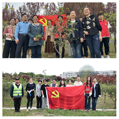 海棠园开展修树除草美化校园主题“党建+”融合联盟活动。