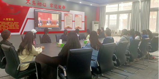 首先,研究生党支部党员王逸清组织大家观看视频,习近平总书记的重要讲话深刻阐述事关党和国家事业发展全局的重大问题,具有很强的政治性、思想性和指导性。我们要把学习宣传贯彻党的二十大精神引向深入,继续在全面学习、全面把握、全面落实上下功夫,扎实开展好学习贯彻习近平新时代中国特色社会主义思想主题教育。