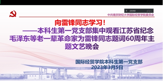 雷锋精神人人可学、人人可为。观看完晚会后,支部全体成员深受鼓舞、备受激励。本科生第一党支部学生党员王爱研同学分享了自己一直以来坚持的无偿献血行动,得到了大家的赞扬与认可。还有其他大学生党员分享了自己在南京博物院,市区各大医院做志愿活动的经历,无一不体现出将雷锋活动融入日常、化作经常的精神品质。支部书记孙绪华老师肯定了大家的付出与奉献精神,并呼吁大家把雷锋精神内化于心,外化于行,在本职工作、学习岗位上做一颗永不生锈的螺丝钉。