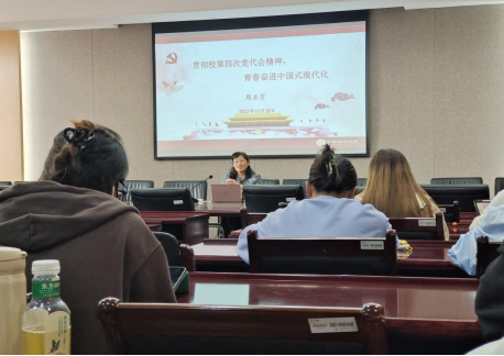 党委书记、分党校校长周亚芳在仙林校区德经楼308会议室,以“贯彻落实校第四次党代会精神,青春奋进中国式现代化”为题给学院第二十期“党的发展对象”培训班的学员们和学生支部党员讲授专题党课。