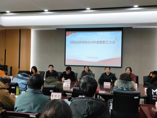 在德经楼308会议室召开2023年度教职工大会,学院领导、全体教职工参加会议,院党委书记周亚芳主持了大会。