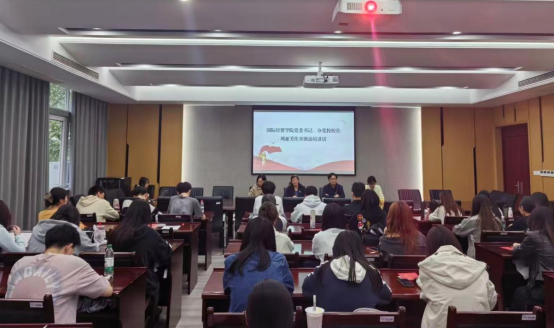 学员代表发言环节,国贸2201班徐贞志同学代表全体学员表示,此次培训既是荣誉更是责任,全体学员将坚持读原著、学原文、悟原理,把理论学习与专业实践相结合,严守纪律、勤学善思。