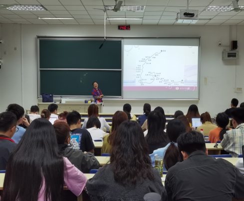 王俭副教授从红军长征路线图出发,带领同学们追寻红色足迹。她通过讲述红军长征途中的“河口会师”、“阿坝会议”、“卓木碉会议”等故事以及长征过程中发生的两条路线的冲突,为同学们深入剖析了红军长征北上决策的正确性。接着,她向同学们描述了长征北上途中发生的震撼人心的故事。其中讲到“班佑纪念碑”背后的故事的时候,她这样说到:“在班佑牺牲的这群革命先烈们,走出草地,曙光在前,他们却终于没有见到曙光。”同学们听完后无不为之动容,不少人眼中甚至闪烁着泪光,心中充满了对革命先烈的崇敬与缅怀。