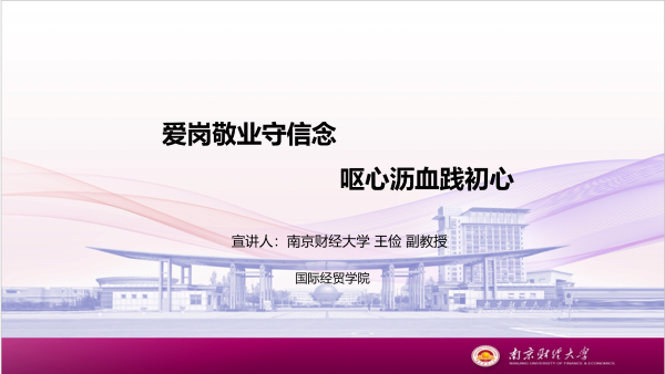 邀请副教授王俭于线上开展题为“爱岗敬业守信念,呕心沥血践初心”的学术讲座。