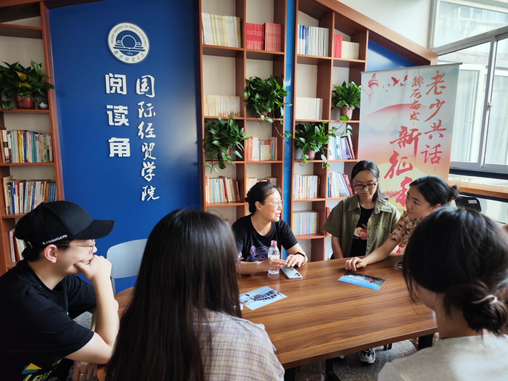 谈及青年的担当,王俭老师表示“一代人有一代人的长征,当代青年要担负起自己的责任,明确自己的未来规划,走好自己要走的路。”同时,王俭老师与我们分享了她的人生经历。从1984年入校到2020年退休,36年来王俭老师始终如一的奋斗在国贸院的教学前线。王俭老师嘱咐同学们要“干一行爱一行”,以饱满的精神状态投身到祖国的建设中去。五老精神为航灯,老少共话是传承。广大青年要紧紧贯彻五老精神,以前辈楷模为榜样,肩负起新征程上中国青年的使命任务和责任担当。