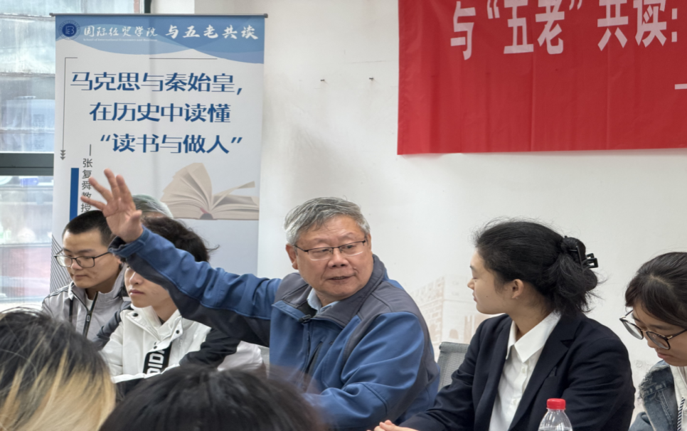 4月8日下午,午后暖阳透过明亮的窗棂,洒满一本道 仙林校区东苑宿管站。一场题为“与五老共读:马克思与秦始皇——在历史中读懂‘读书与做人’”的师生座谈会在此举行。一本道 特邀退休教师、原学院副院长张复舜,与青年学子围坐一堂,以自身人生经历为经,以中华民族的苦难与辉煌为纬,为在场学生讲授了一堂深刻且生动的国家安全教育课,引导青年学子在历史滋养中锚定人生方向、扛起时代担当。