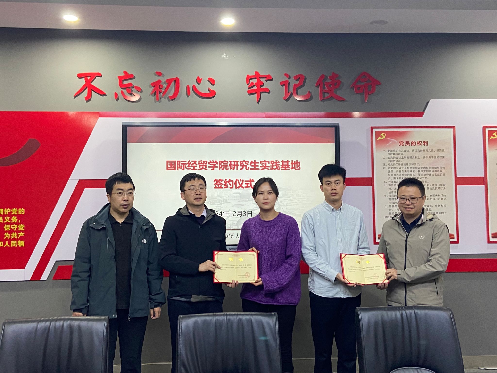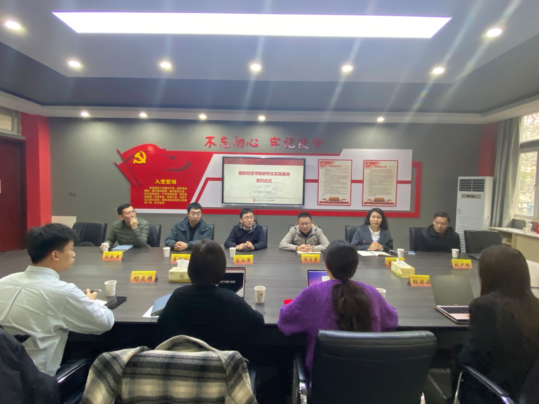 与江苏未迟数字技术有限公司在德经楼206会议室举行了研究生实践基地签约仪式。余泳泽院长、陈启斐副院长、李冠艺副院长、学科骨干教师李平华、刘凯丰和张少辉出席了此次签约仪式。余泳泽院长对江苏未迟数字技术有限公司的四位领导莅临一本道