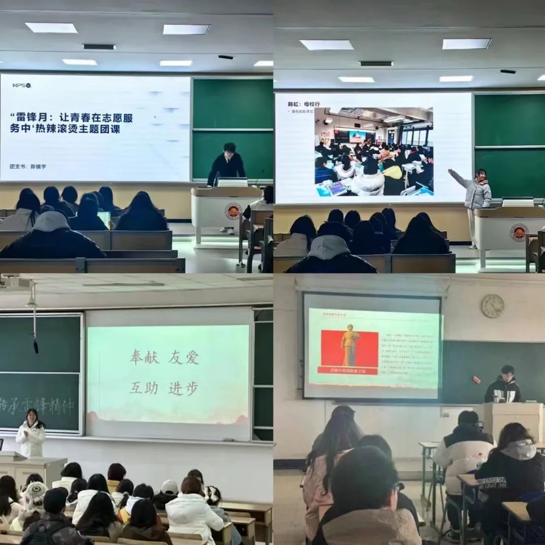 各团支部积极开展雷锋日主题团课活动,重温雷锋事迹,学习雷锋精神。支部同学们热烈讨论了新时代大学生何以践行雷锋精神,不少支部的寒假志愿“红马甲”们分享着自己的志愿服务经历,从腊八节社区施粥到春节街道安全排查,从“云支教”到陪伴失独老人,一本道