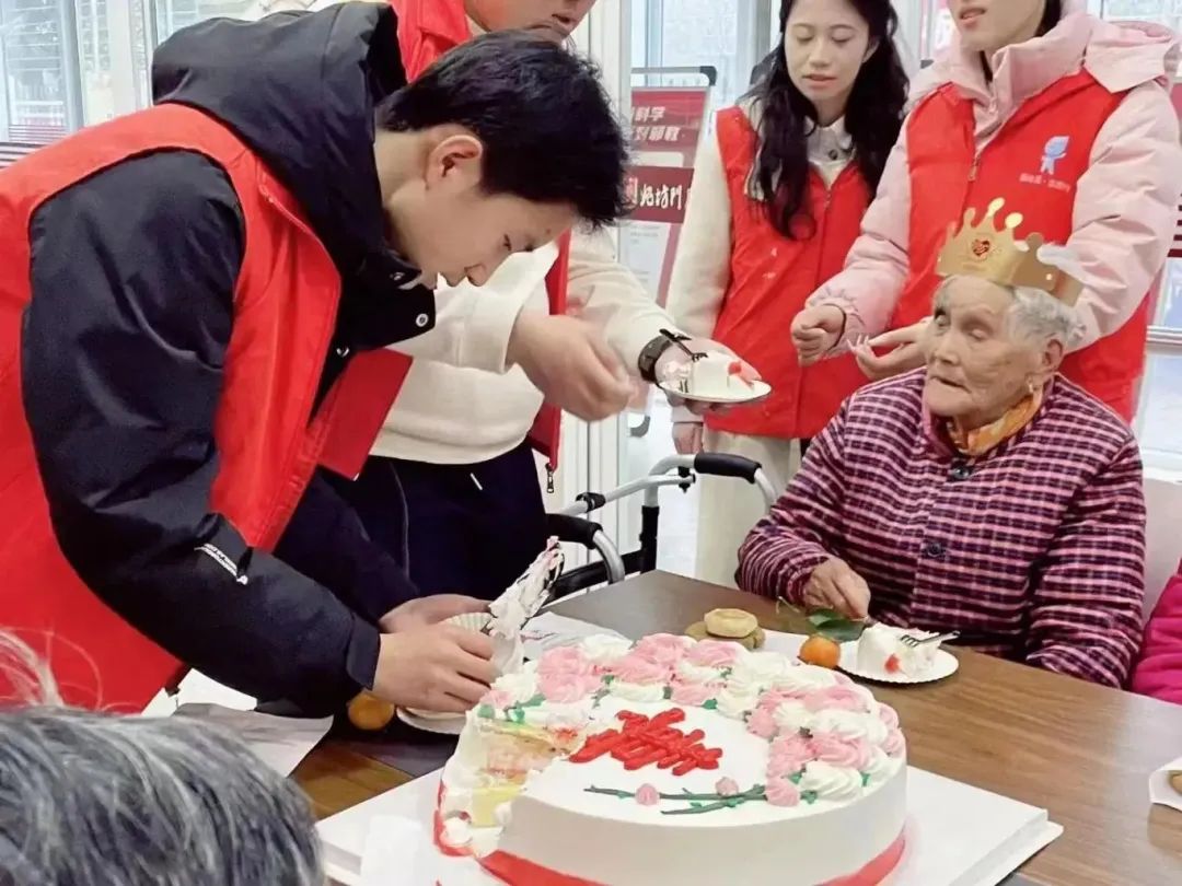 组织“银发生辉·共筑未来”党团社区志愿服务,小队前往姚坊门社区养老服务中心开展“温暖常相伴,共为银发安”学雷锋进社区志愿活动。志愿者联合社区准备了精美的糕点和水果等为年过80岁的14位老人集体祝寿。生日会后,志愿者陪着老人们畅谈聊天,聊国家大事也聊家长里短,生活近况。党员志愿者潘薇薇为不会用手机办理年审的老人们仔细讲解,手把手演示如何操作,切实帮助老人解决生活困难。临走时,老人们亲切地与志愿者们挥手告别,感谢同学们的到来与慰问,期待下一次相约。